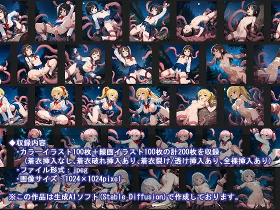 | 備考 | ・Stable Diffusionで制作 ・不自然な描写があります ・登場人物は成人です |