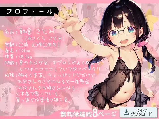 | ジャンル | メガネ 父 中出し 近親もの 口内射精 貧乳/微乳 処女 |
