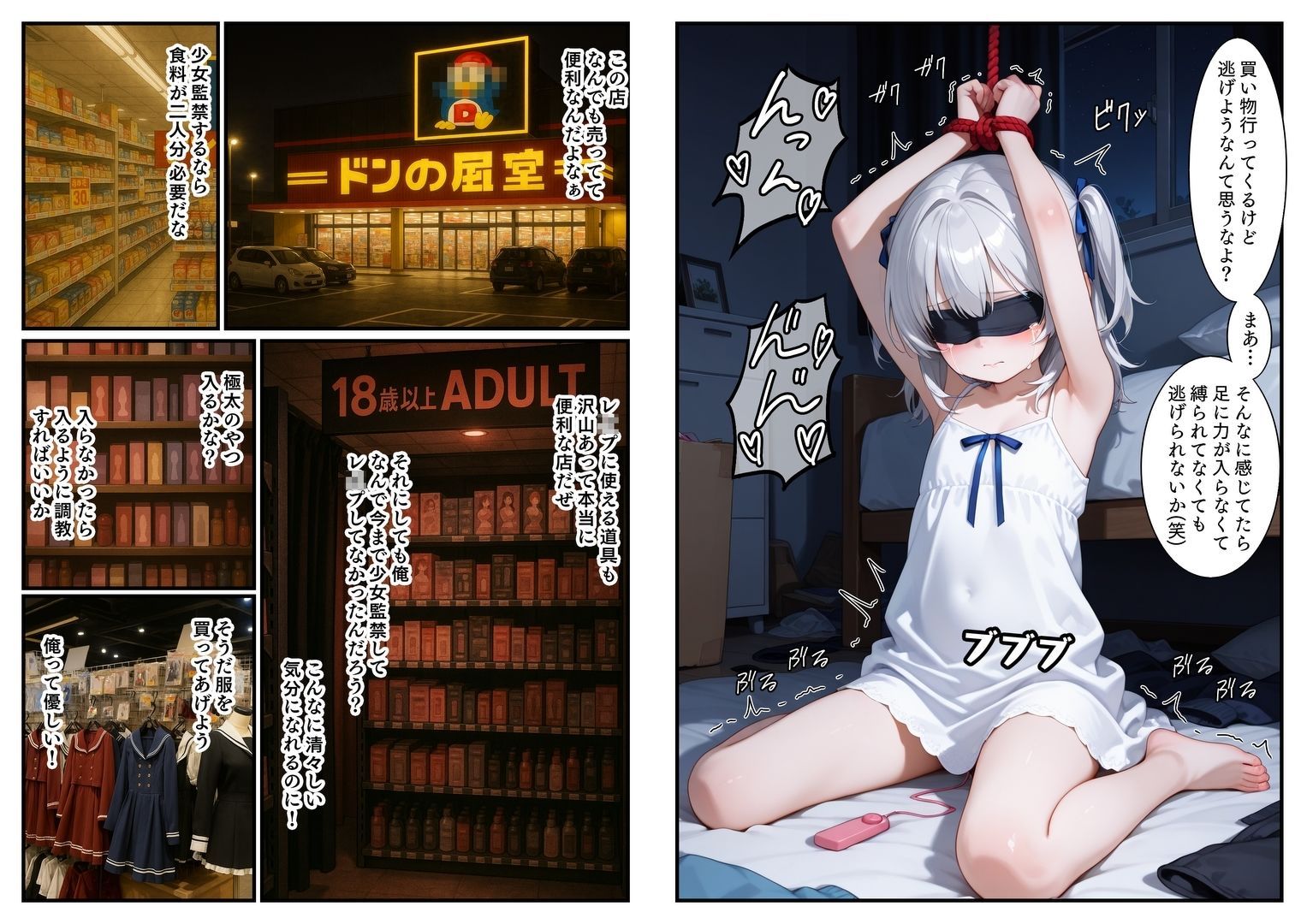 | ジャンル | 拘束 中出し ぶっかけ 監禁 縛り・緊縛 イラマチオ つるぺた 断面図あり 男性向け 成人向け 目隠し |